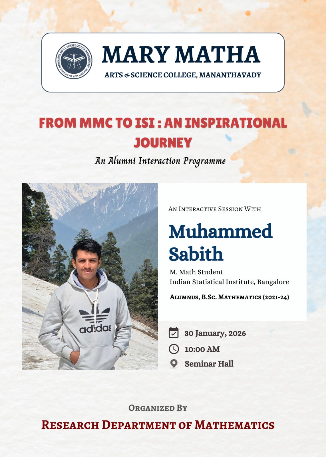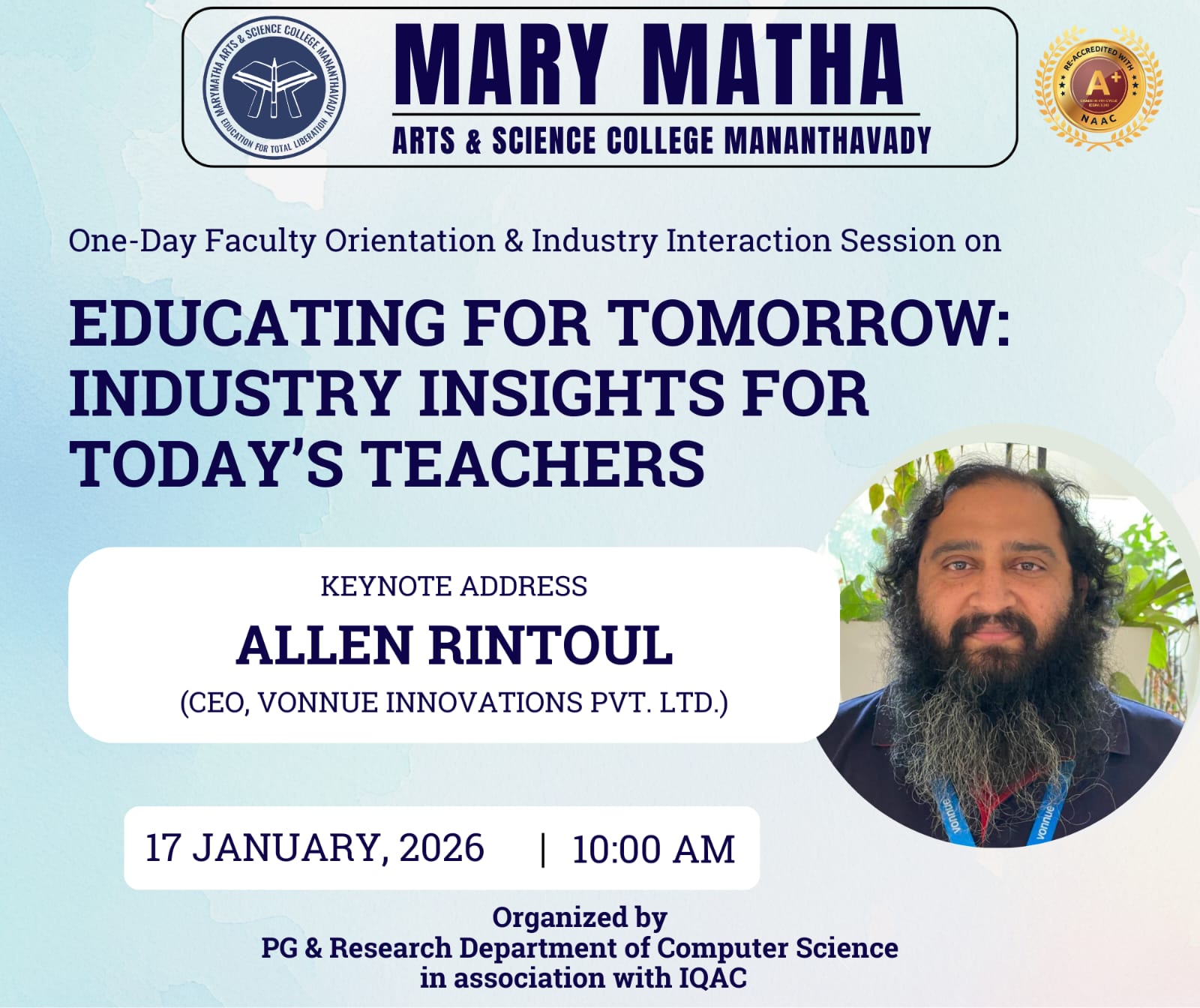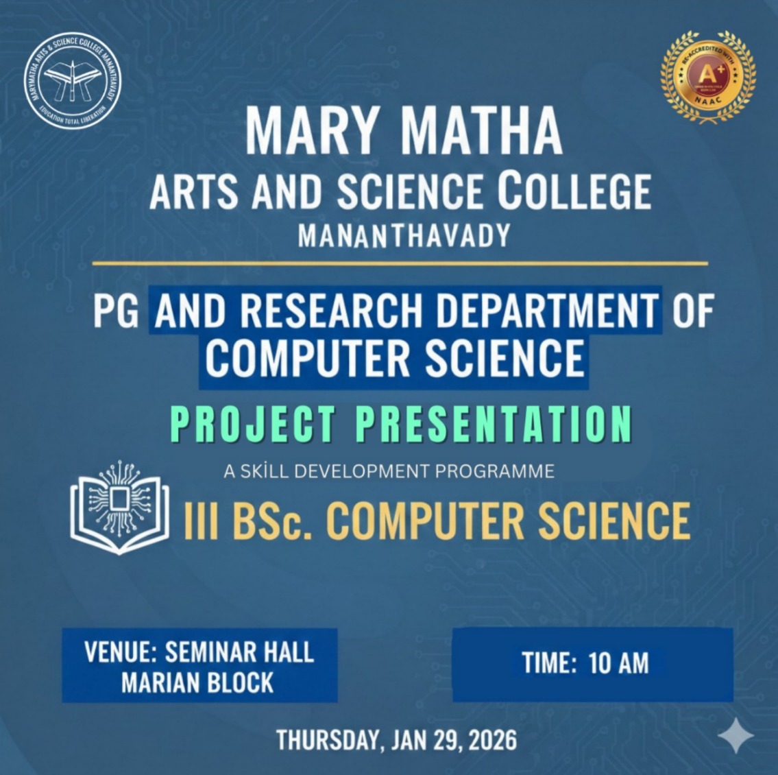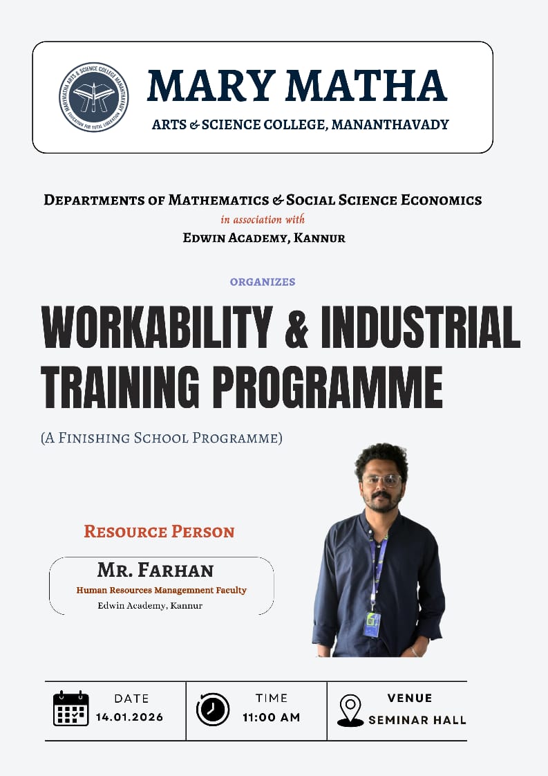 It is a pleasure communicating with all those who evince interest in the higher educational credentials of Mary Matha Arts Science College, Mananthavady. We have had a consistent tradition of overcoming social and geographical constraints to beat marginalization and achieve excellence.