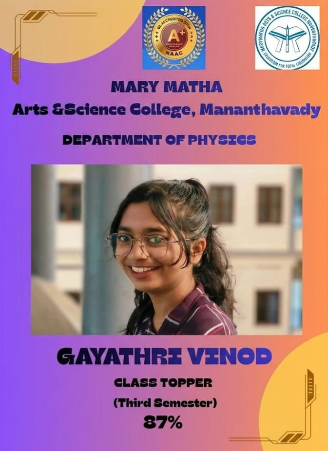 The three-year regular B.Sc. Physics degree course was started in Mary Matha Arts and Science College in the year 2014.