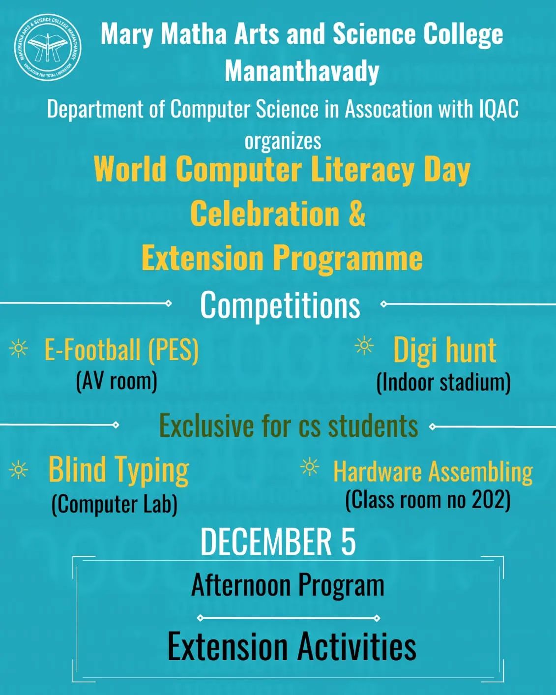 Organised by Department Of Computer Science. A Computer Literacy Day Programme