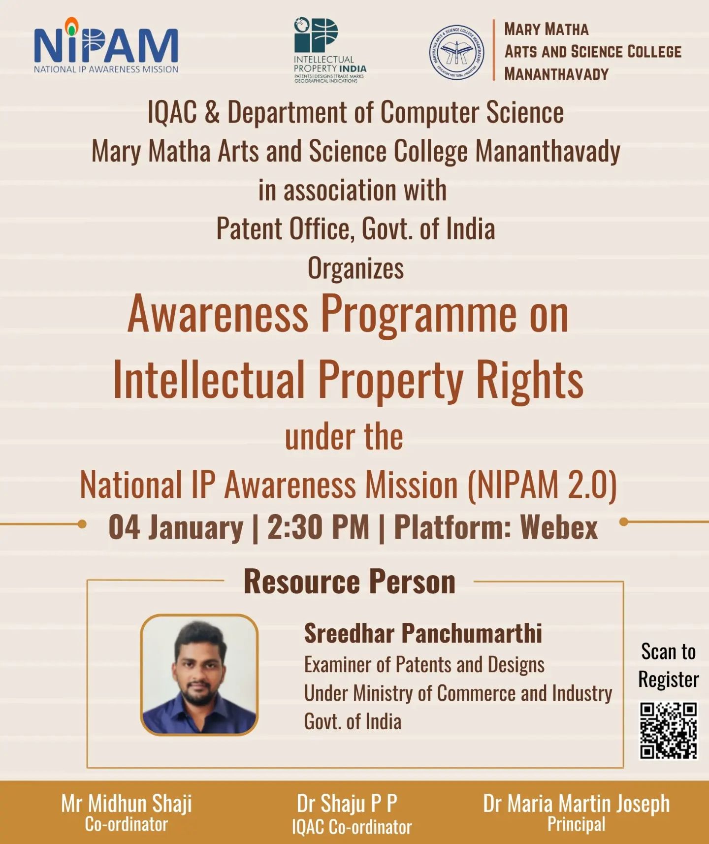 IQAC & Department of Computer Science Mary Matha Arts and Science College Mananthavady in association with Patent Offce, Govt. of India