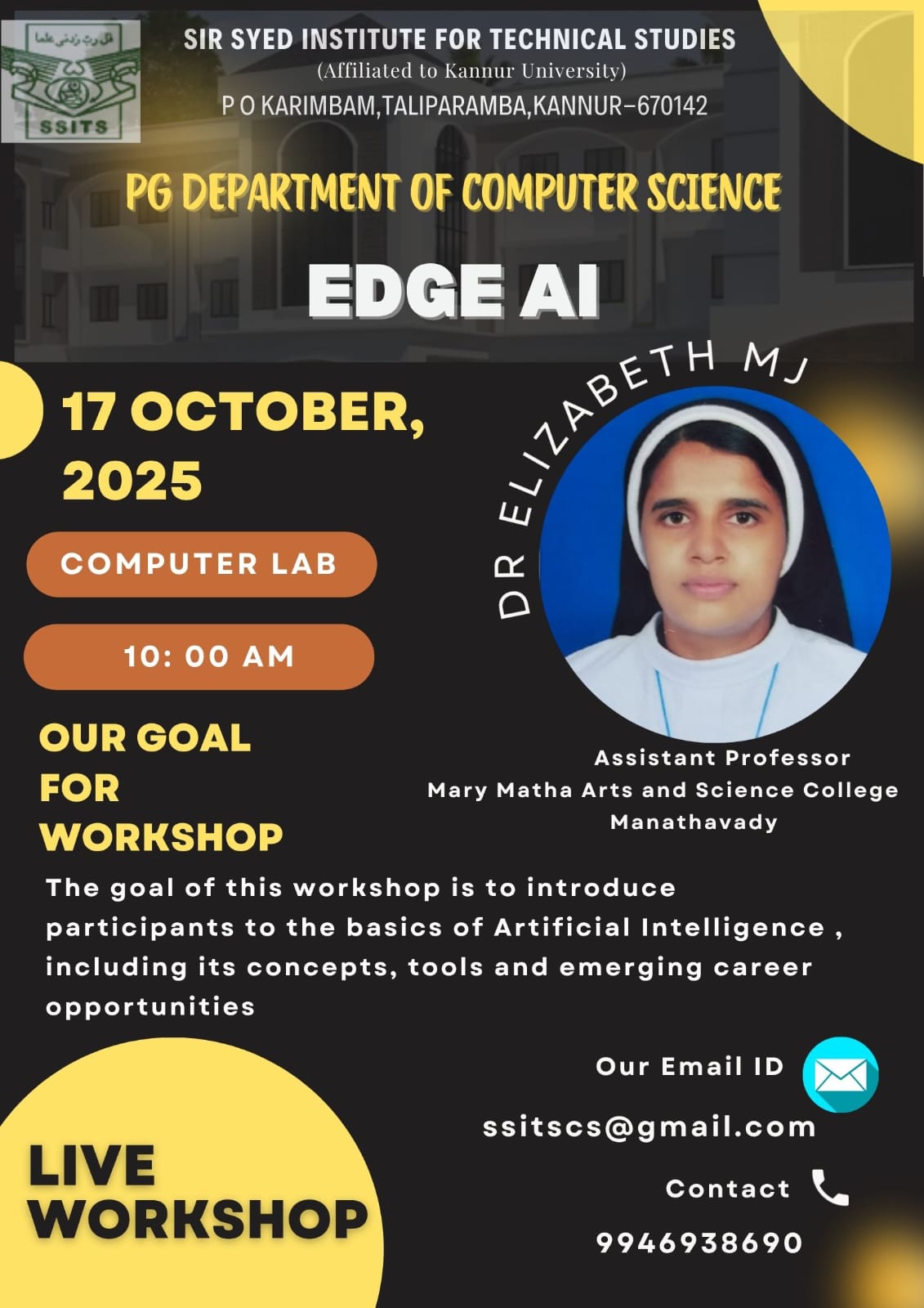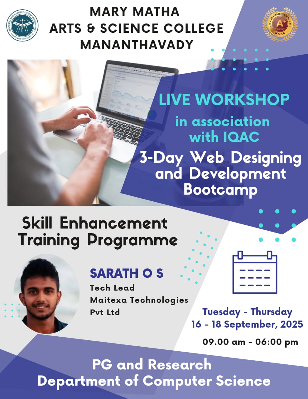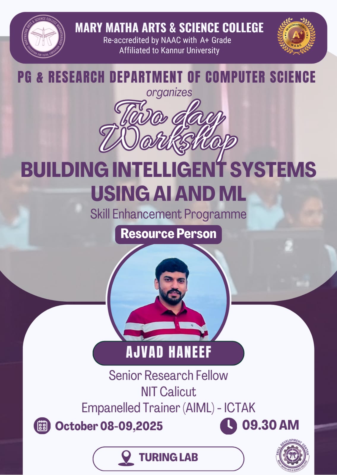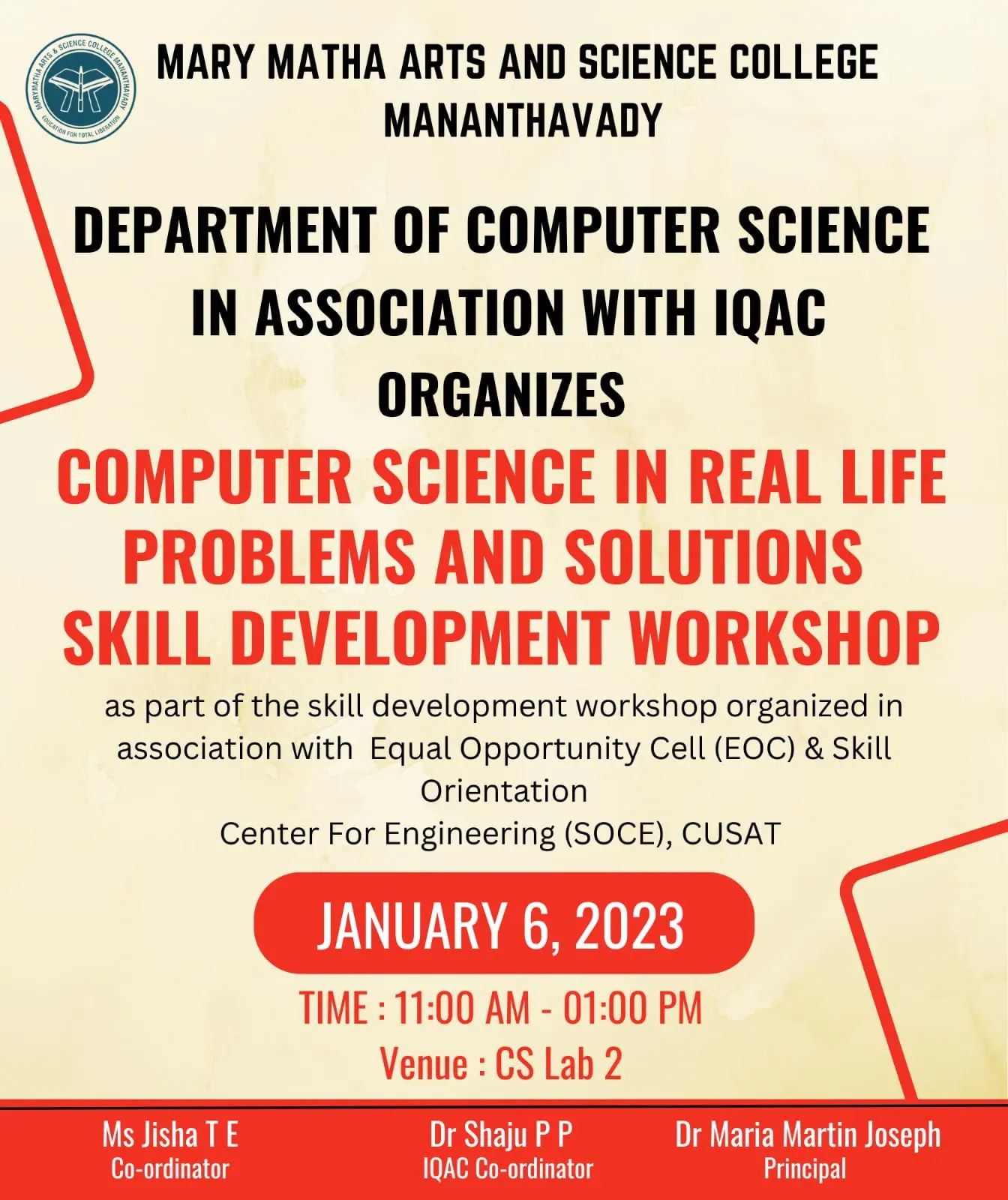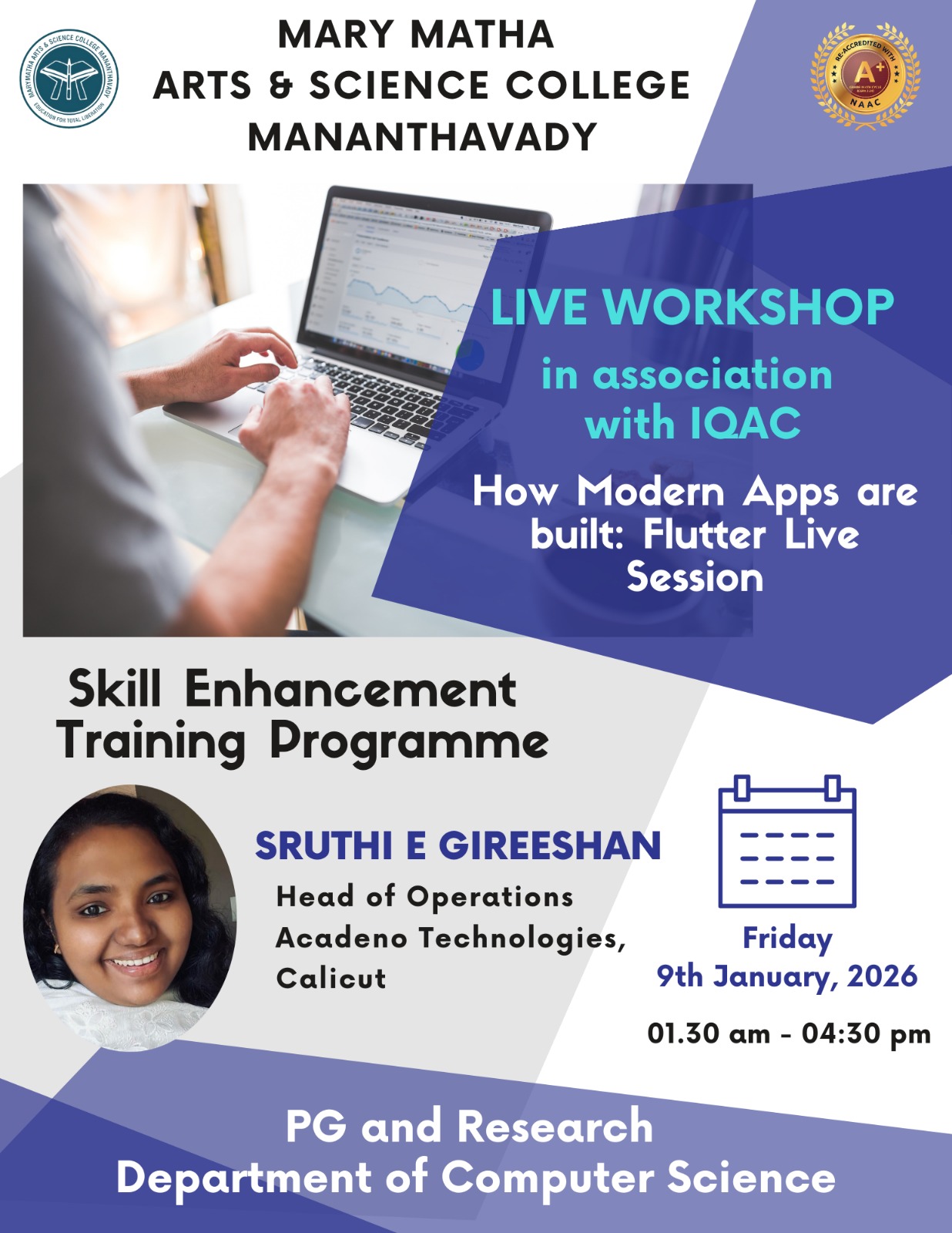 DEPARTMENT OF COMPUTER SCIENCE IN ASSOCIATION WITH IQAC ORGANIZES COMPUTER SCIENCE IN REAL LIFE PROBLEMS AND SOLUTIONS SKILL DEVELOPMENT WORKSHOP