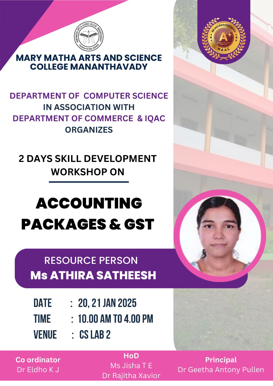 DEPARTMENT OF COMPUTER SCIENCE IN ASSOCIATION WITH DEPARTMENT OF COMMERCE ORGANIZES A Skill Development Workshop on ACCOUNTING PACKAGES USING TALLY