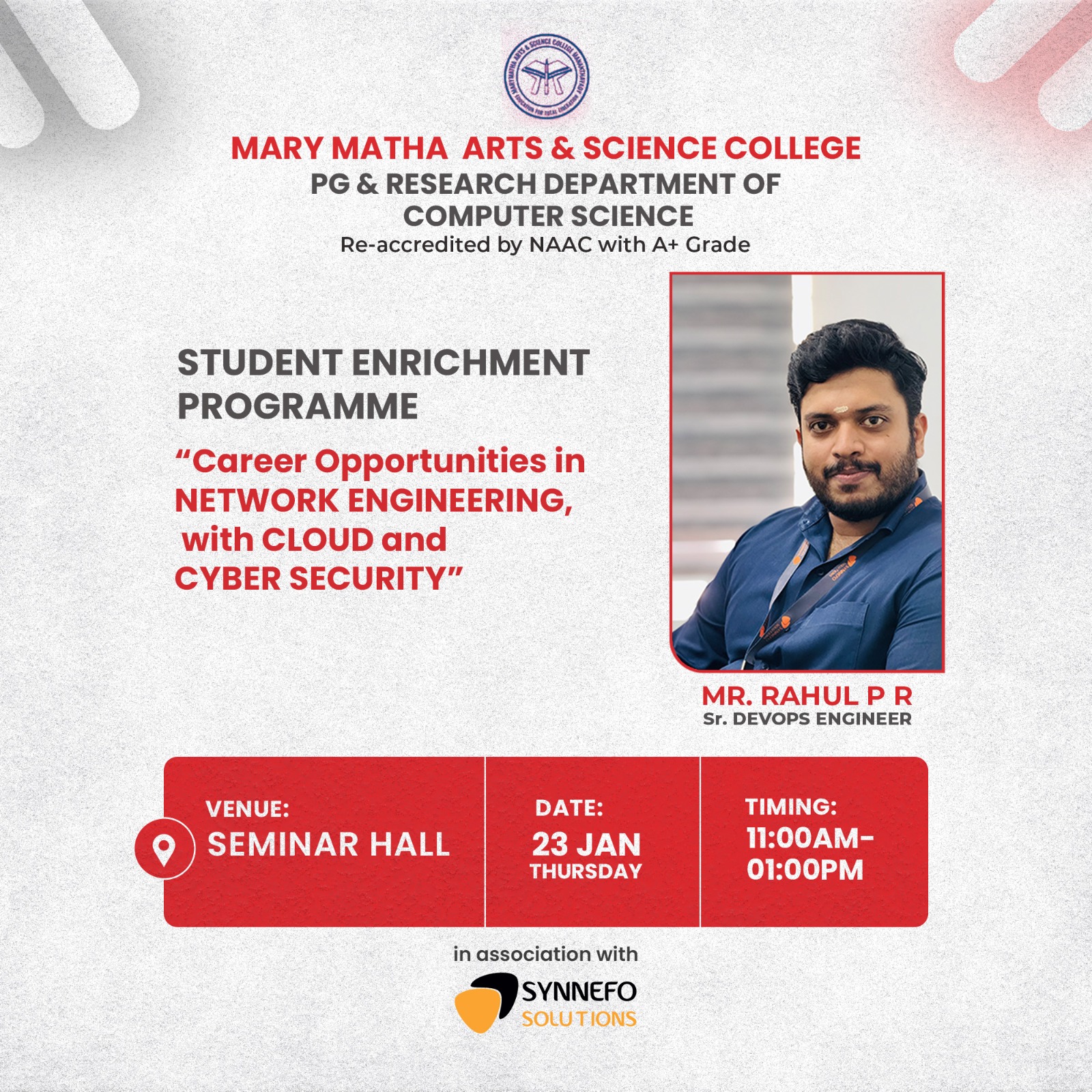 Talk on Career Opportunities in NETWORK ENGINEERING, with CLOUD and CYBER SECURITY