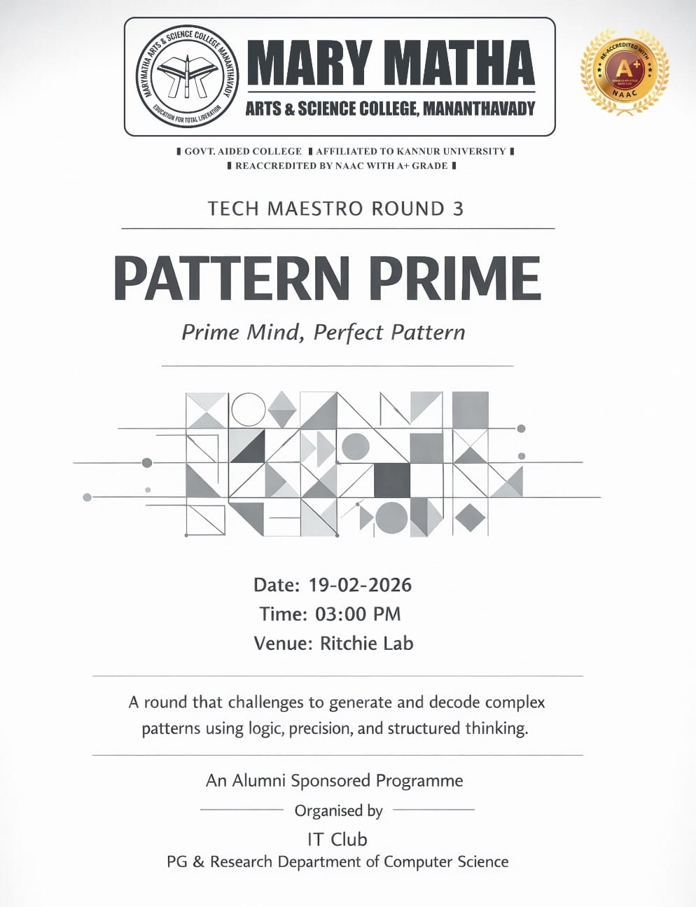 ORGANISED BY IT CLUB IN ASSOCIATION WITH DEPARTMENT OF COMPUTER SCIENCE