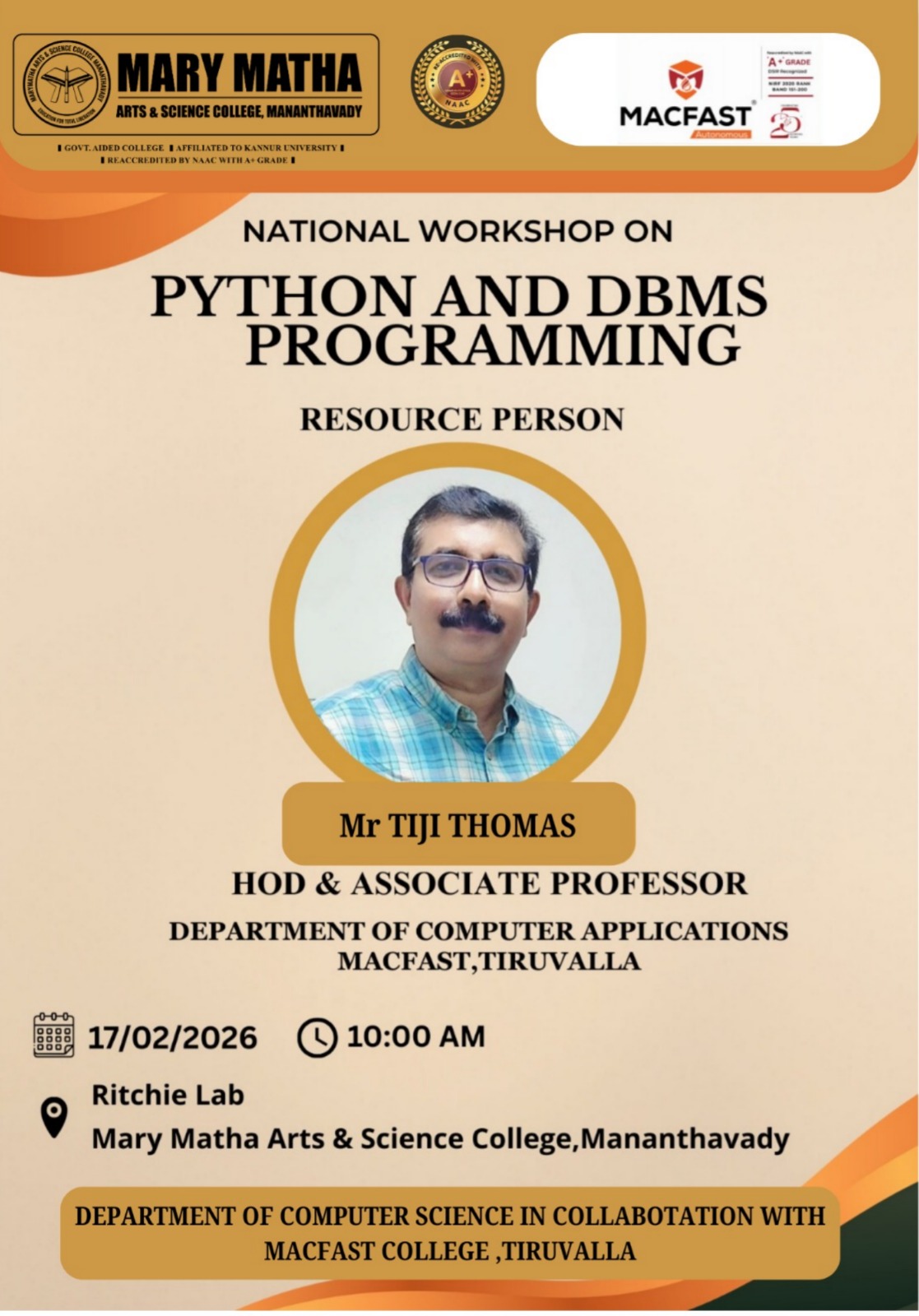 SCIENCE IN COLLABOTATION WITH MACFAST COLLEGE, TIRUVALLA