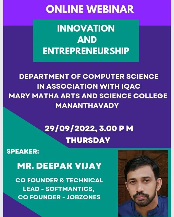 Department of Computer Science in association with IQAC organizes webinar on innovation and entrepreneurship on 29-09-2022