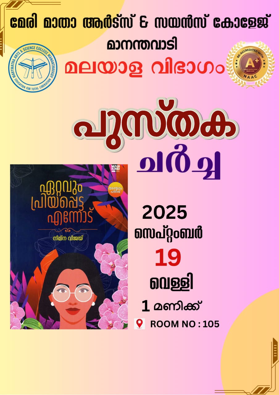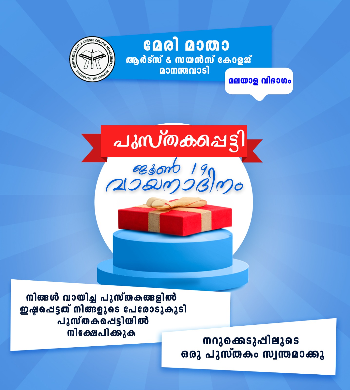 വായനാദിനത്തോടനുബന്ധിച്ച് 19-06-2023 ന് മലയാളം ഡിപ്പാർട്ട്മെന്റ് സംഘടിപ്പിക്കുന്ന പരിപാടികൾ