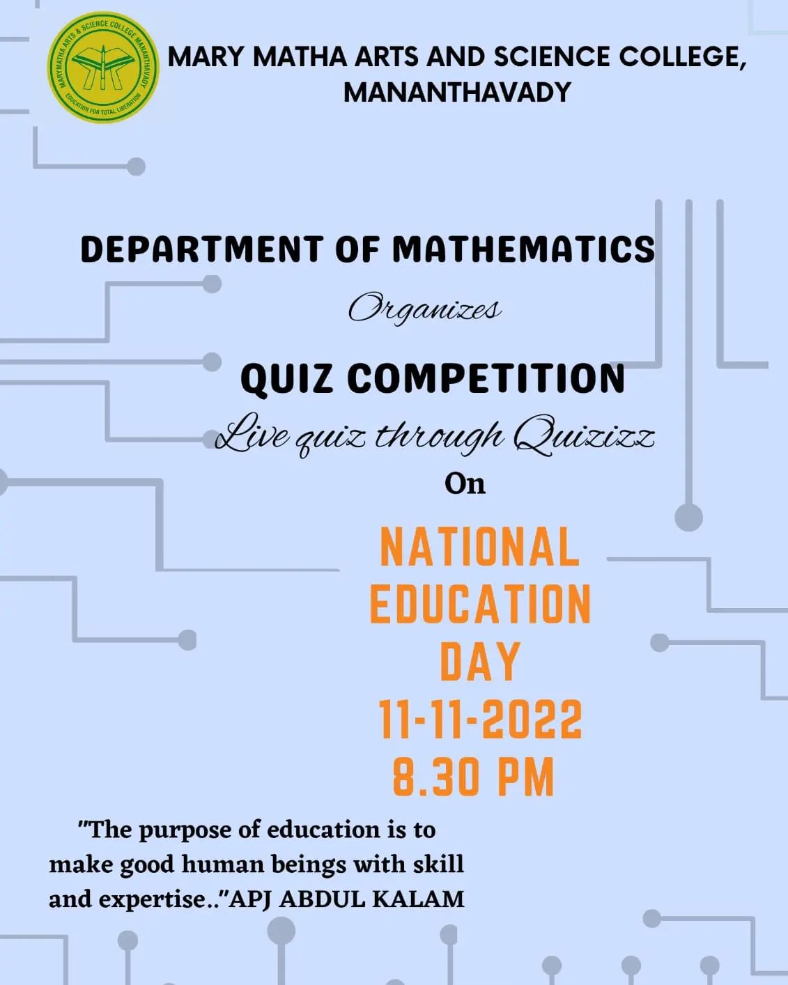 DEPARTMENT OF MATHEMATICS Organizes QUIZ COMPETITION