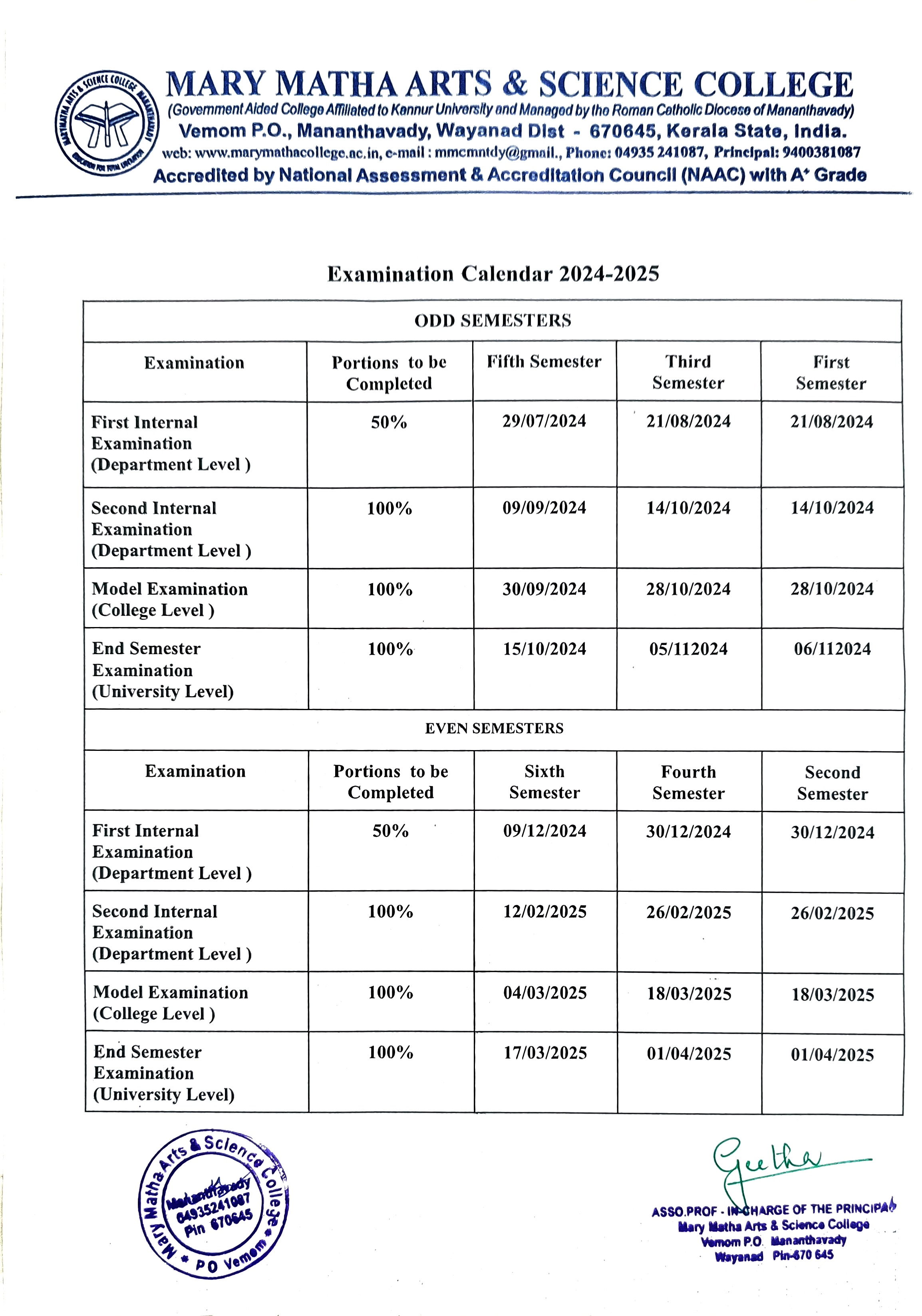 The interview for the post of Guest Lecturer in Chemistry and Physics, which was originally scheduled to be held on May 23, 2025, at Mary Matha Arts & Science College, Mananthavady, for the academic year 2025–26, has been rescheduled to May 26, 2025 (Monday). The revised time schedule is as follows: Chemistry at 9:30 a.m. and Physics at 11:00 a.m. Interested candidates should report to the college office on the day of the interview with: An application in the prescribed format Self-attested copies of relevant documents Original certificates Proof of registration with the Directorate of Collegiate Education Phone numbers: 04935 241087, 9400381087