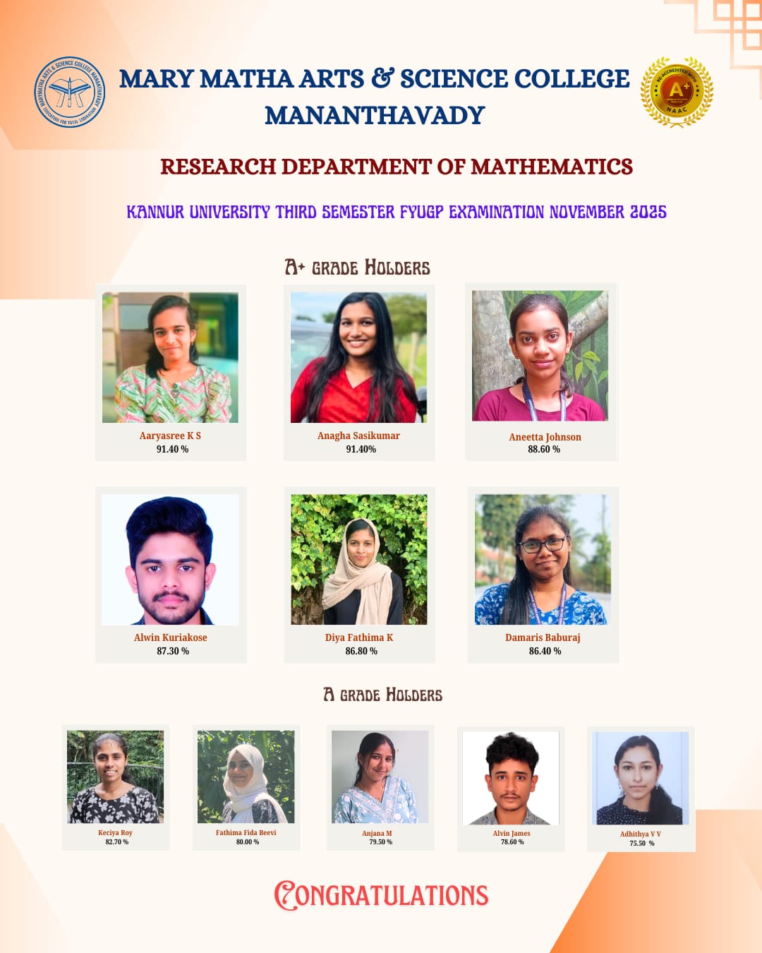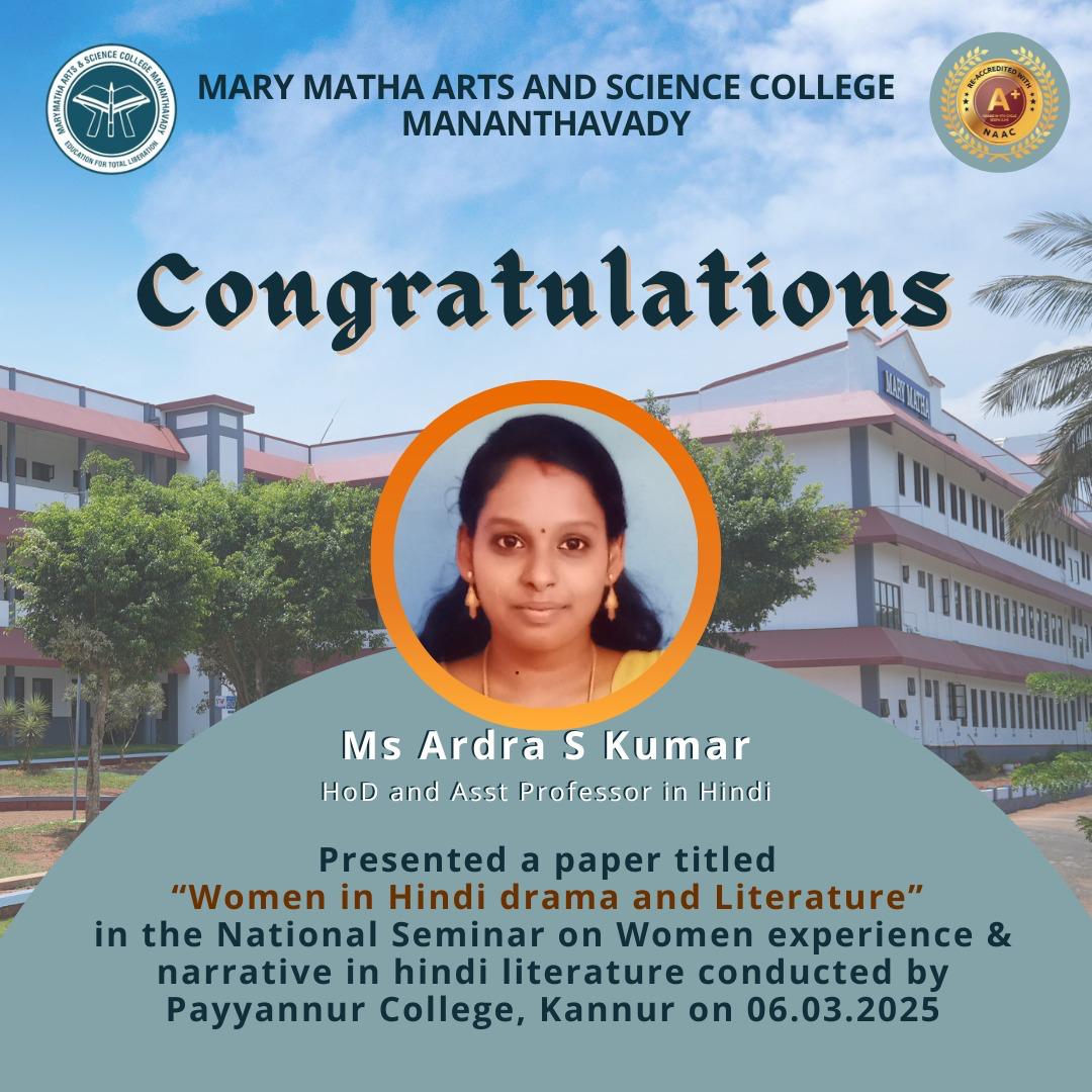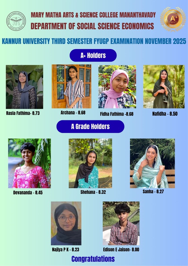 It is a pleasure communicating with all those who evince interest in the higher educational credentials of Mary Matha Arts Science College, Mananthavady. We have had a consistent tradition of overcoming social and geographical constraints to beat marginalization and achieve excellence.