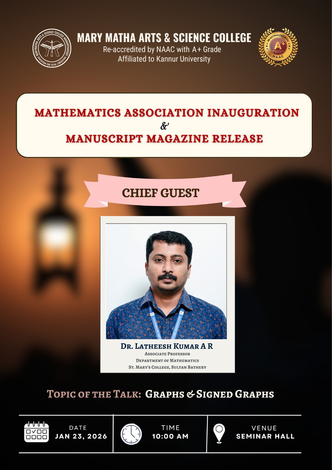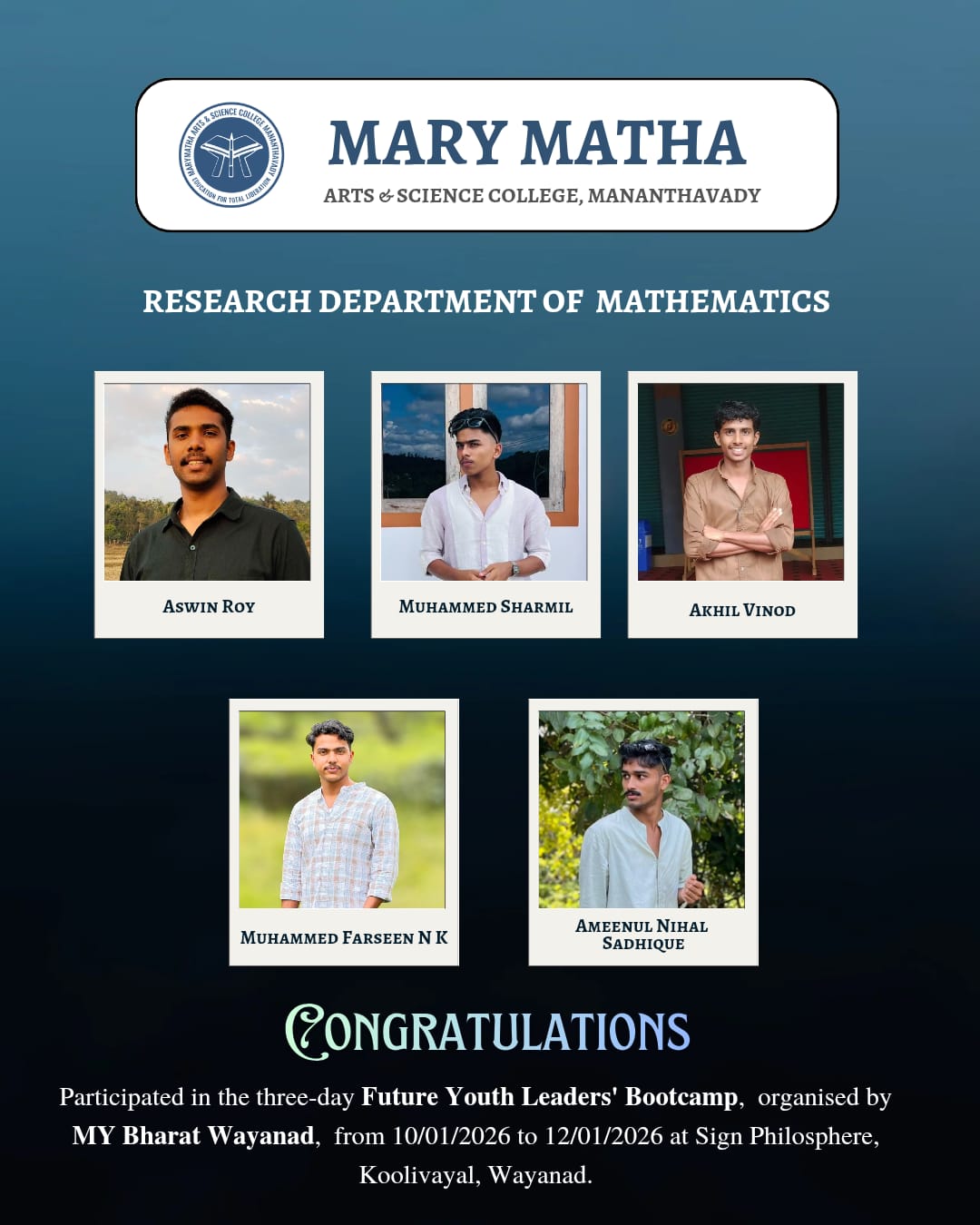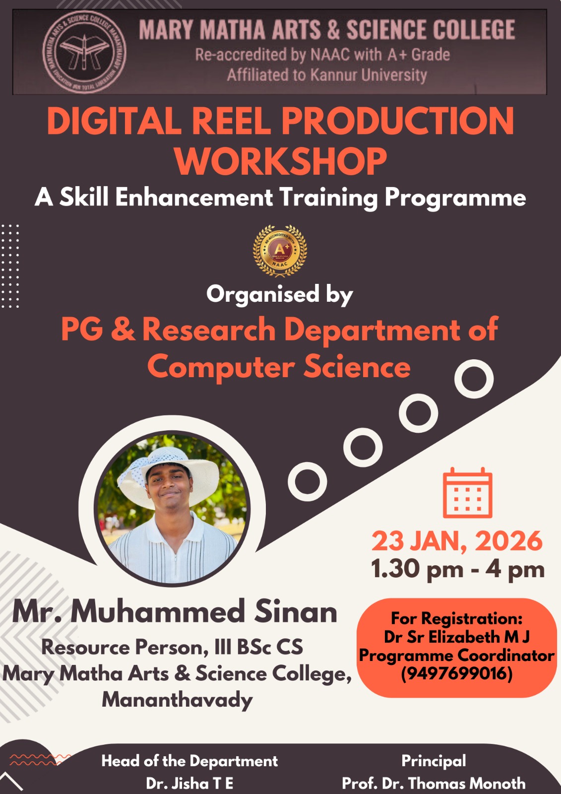 It is a pleasure communicating with all those who evince interest in the higher educational credentials of Mary Matha Arts Science College, Mananthavady. We have had a consistent tradition of overcoming social and geographical constraints to beat marginalization and achieve excellence.