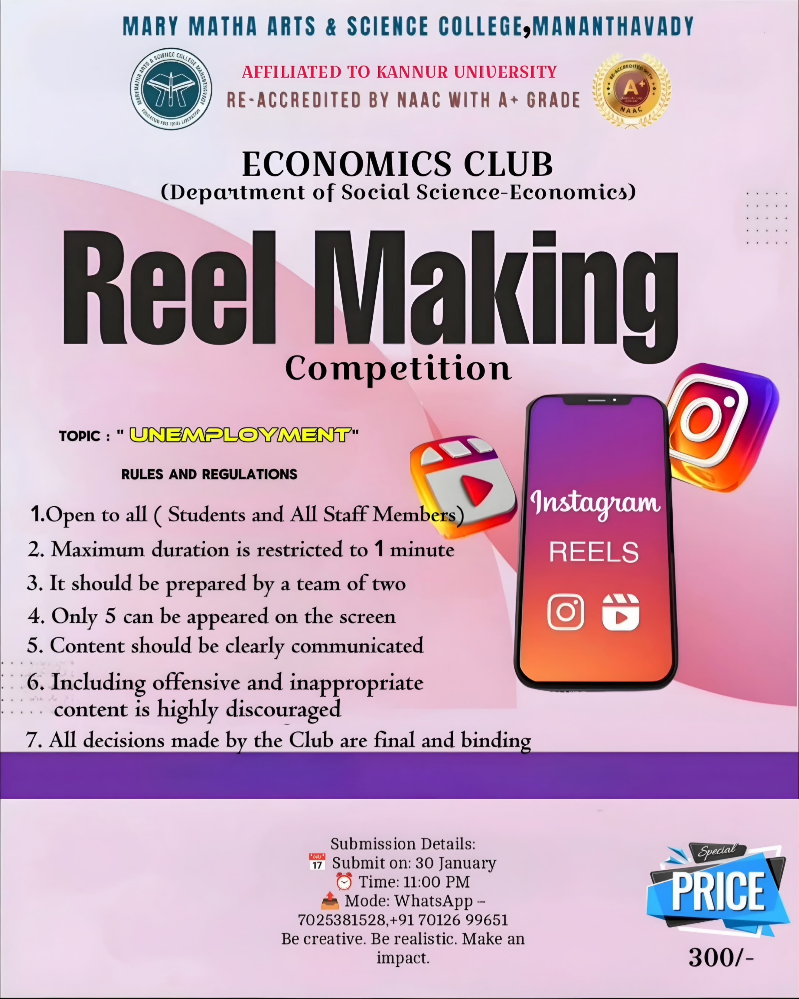 The three-year regular B.Sc. Physics degree course was started in Mary Matha Arts and Science College in the year 2014.