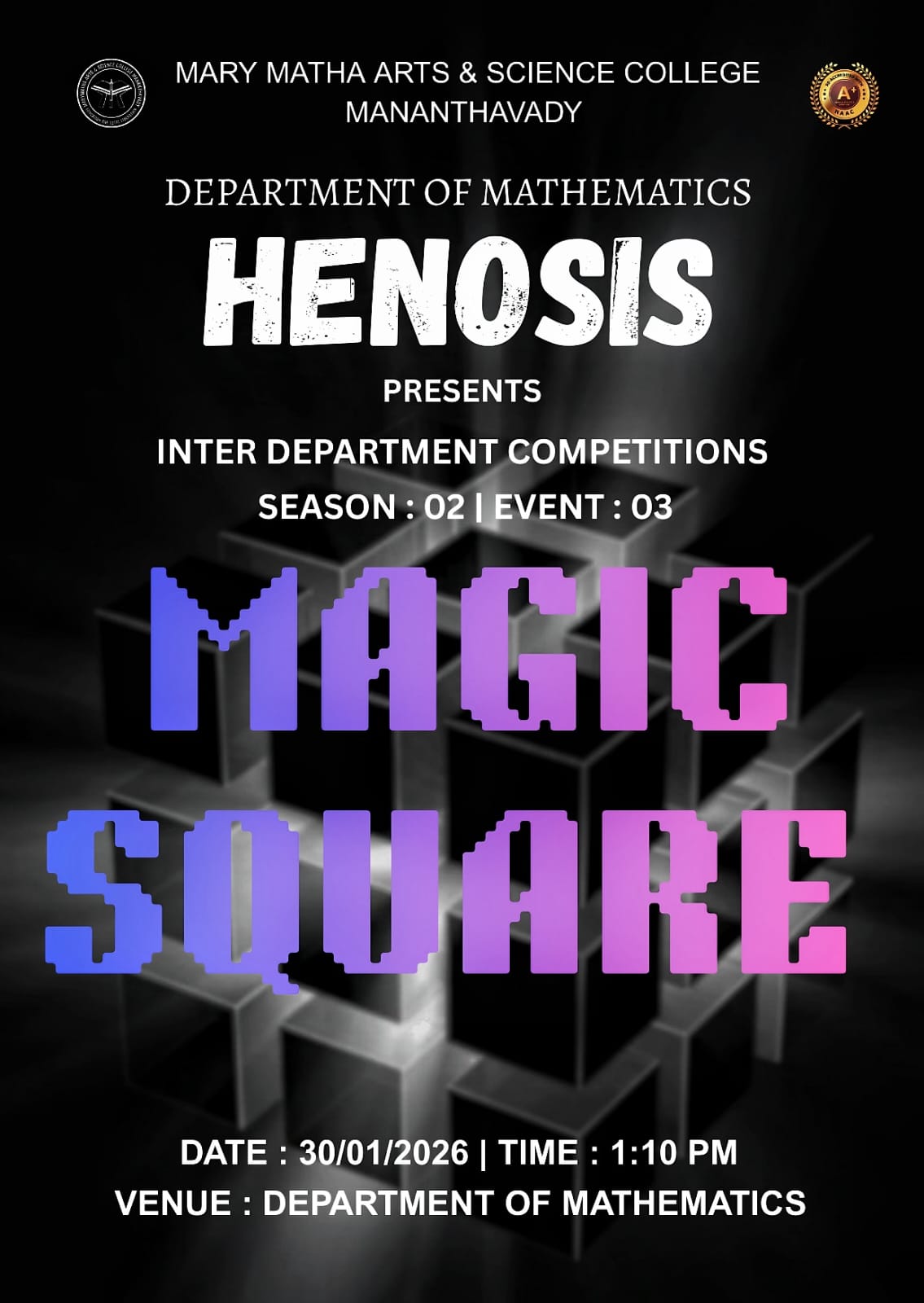 Mary Matha Arts & Science College, Mananthavady is situated on a beautiful hilltop on the Mananthavady-Mysore Highway amidst the sprawling greenery of the Western Ghats, one of the crucial bio-diversity hot spots.