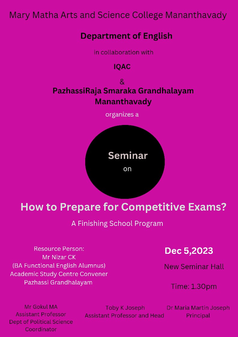 A finishing school programme organised by Department of English in collaboration with IQAC & PazhassiRaja Smaraka Grandhalayam Mananthavady