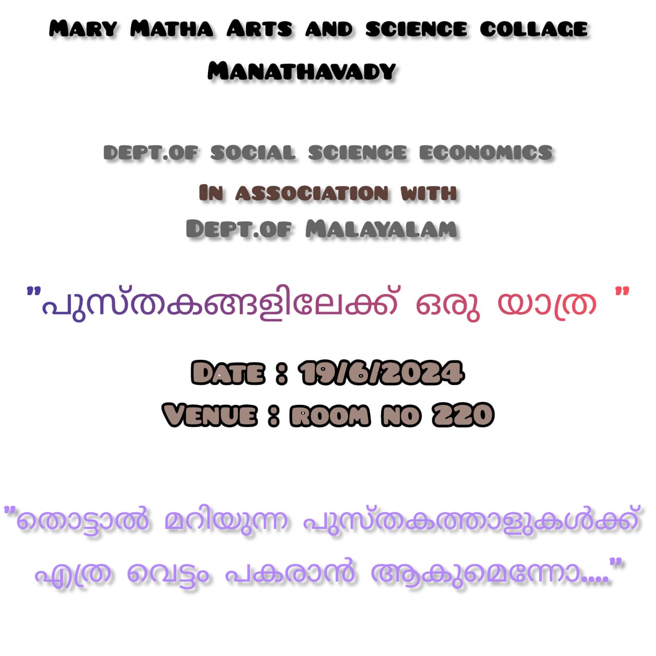 Organised by Dept .of Social Science Economics in Association with Dept .of Malayalam