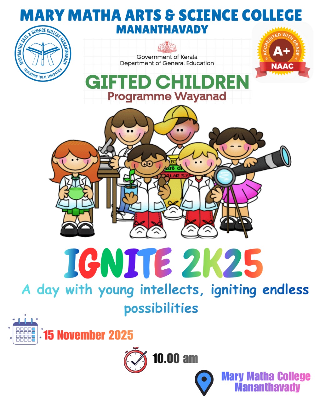 The three-year regular B.Sc. Physics degree course was started in Mary Matha Arts and Science College in the year 2014.