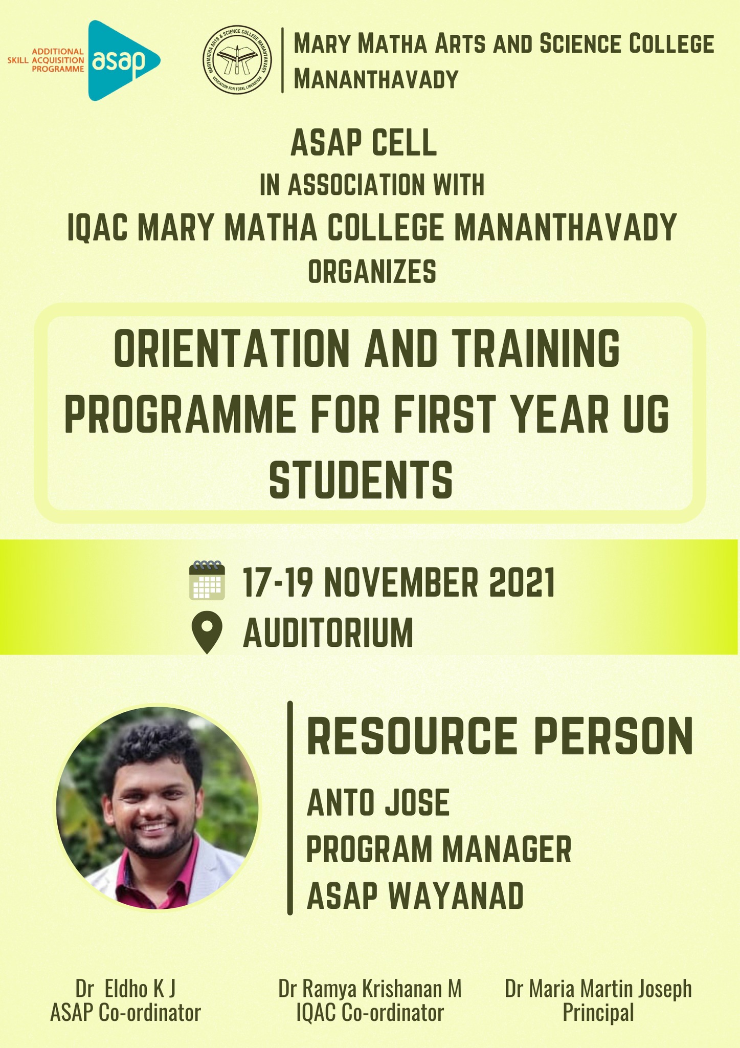 Read MoreASAP cell conducts an orientation and training programme for the first year degree students on 17th , 18th and 30th November 2021