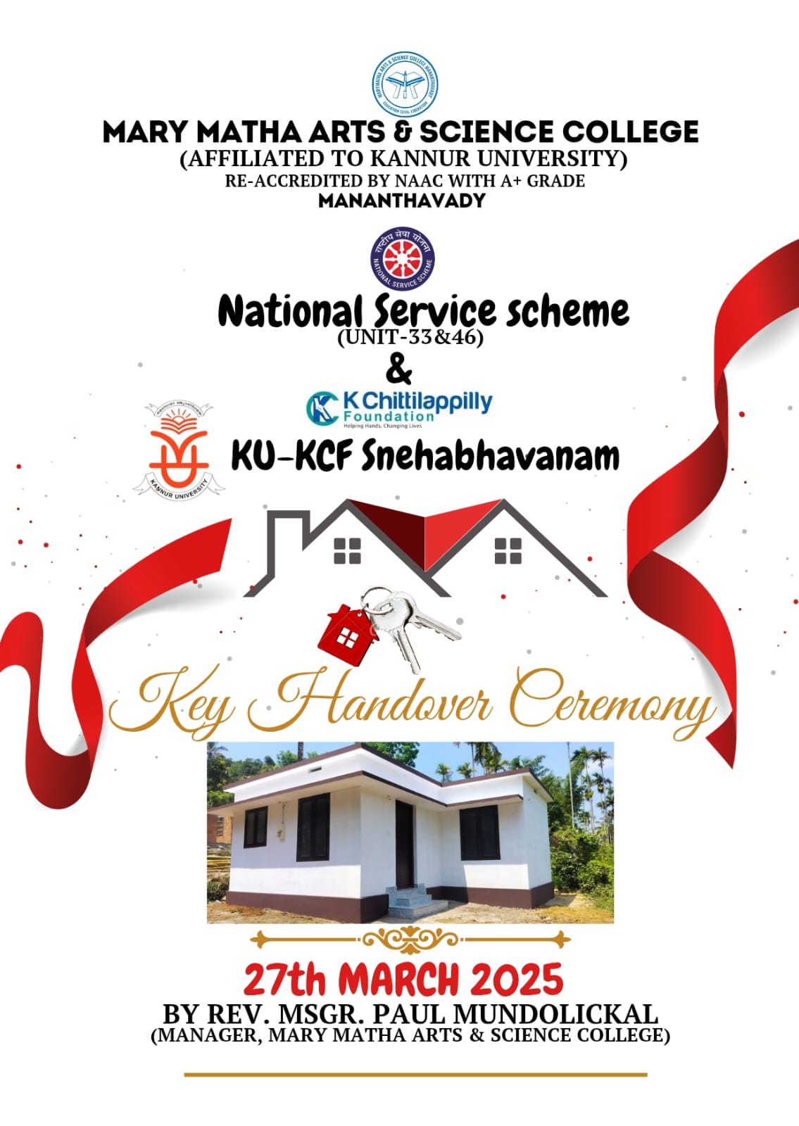 Read MoreThe College has two units of the National Service Scheme (Unit No. 33 & 46 of the Kannur University). The N.S.S. Units facilitate training for 200 students in Social Work. The Units are under the supervision of Dr Sanu V F and Dr Sijo A K, the Programme Officers. The units have undertaken a number of programs that help the students to have a socially committed attitude in their education. The volunteers are trained to preserve human values in their life along with the honours and titles that they achieve in their academic tenure. To accomplish this NSS organizes the following activities. Orientation Programme, Special Camping Programme, Environment enrichment programs, Health awareness programs, Educational Programs, Observe important days, Women Empowerment Programs, Social Service Programs, Production Oriented Programs, Relief & Rehabilitation work during Natural calamities etc.